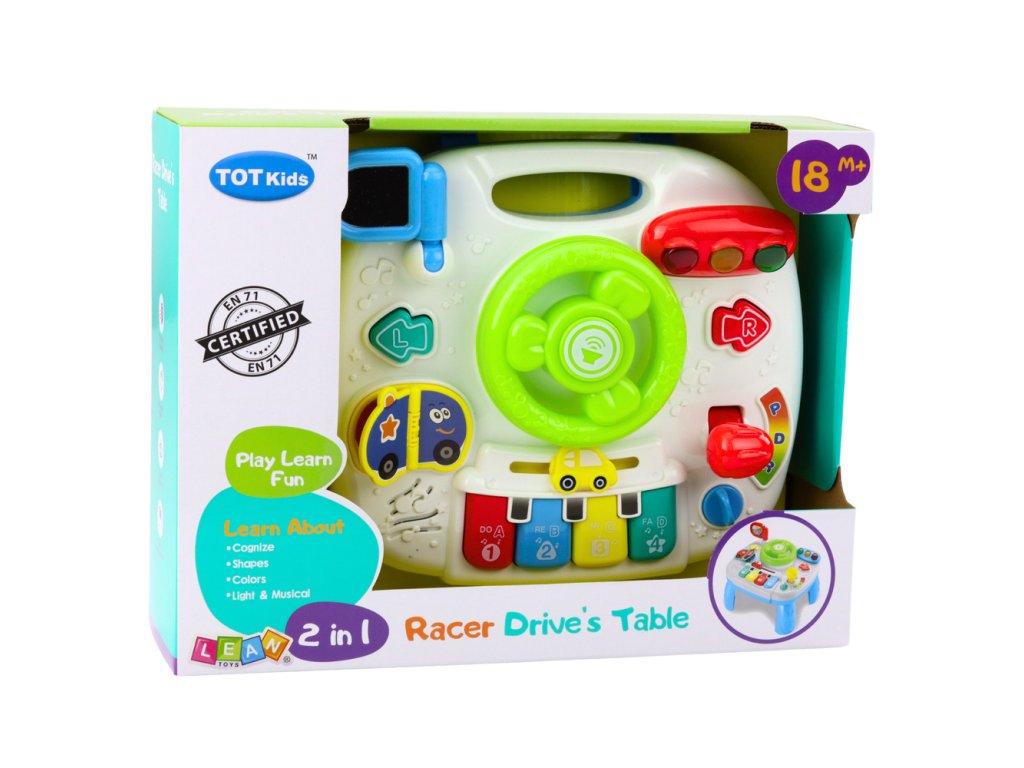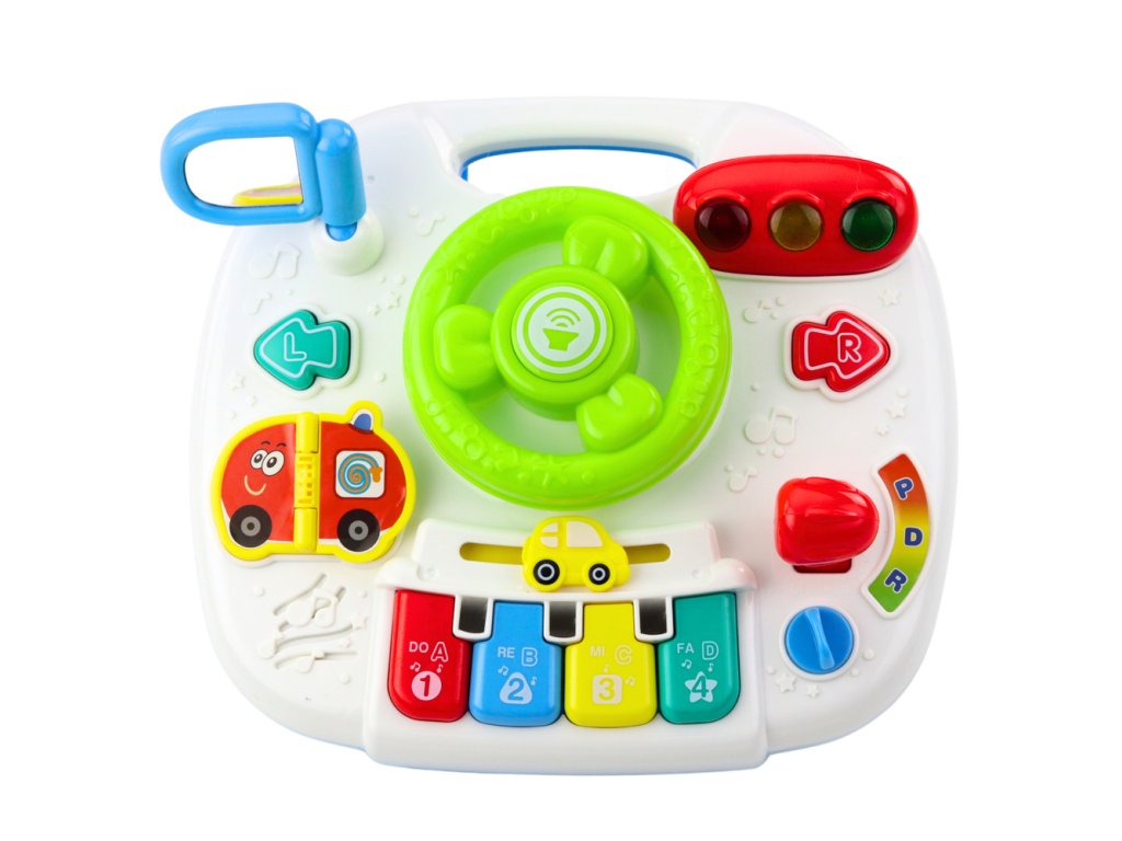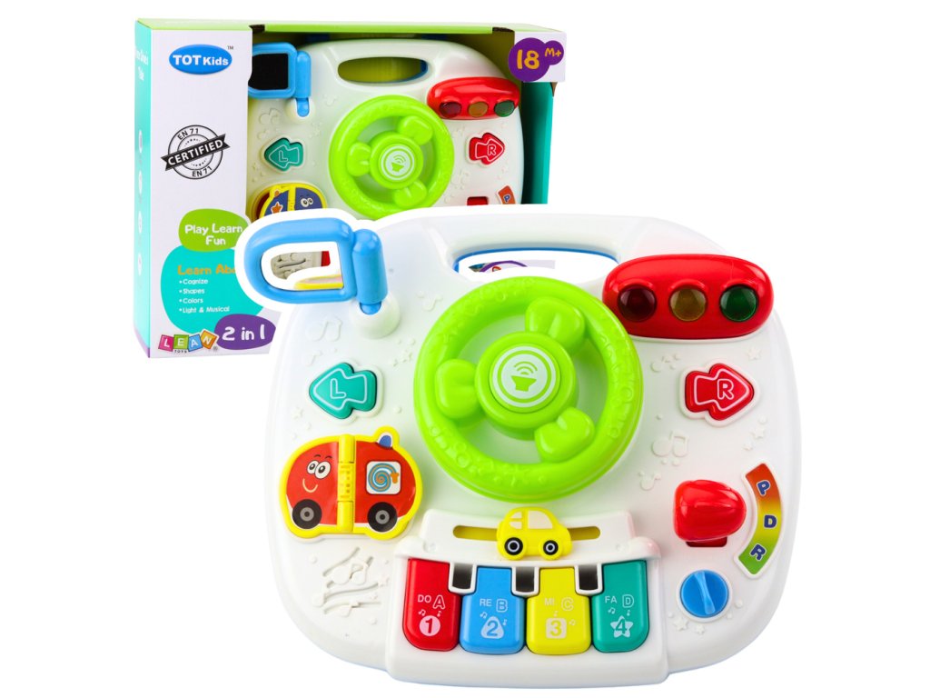 INTERAKTIVNÍ STŮL PRO DĚTI S VOLANTEM VZDĚLÁVACÍ PANEL SE SVĚTLEM A ZVUKEM 2V1