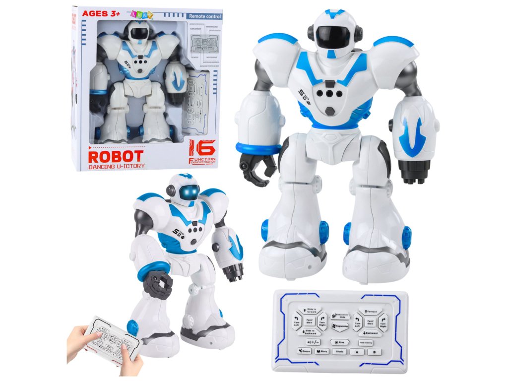 Interaktivní robot na dálkové ovládání – 16 funkcí, světla a zvuky, modrý
