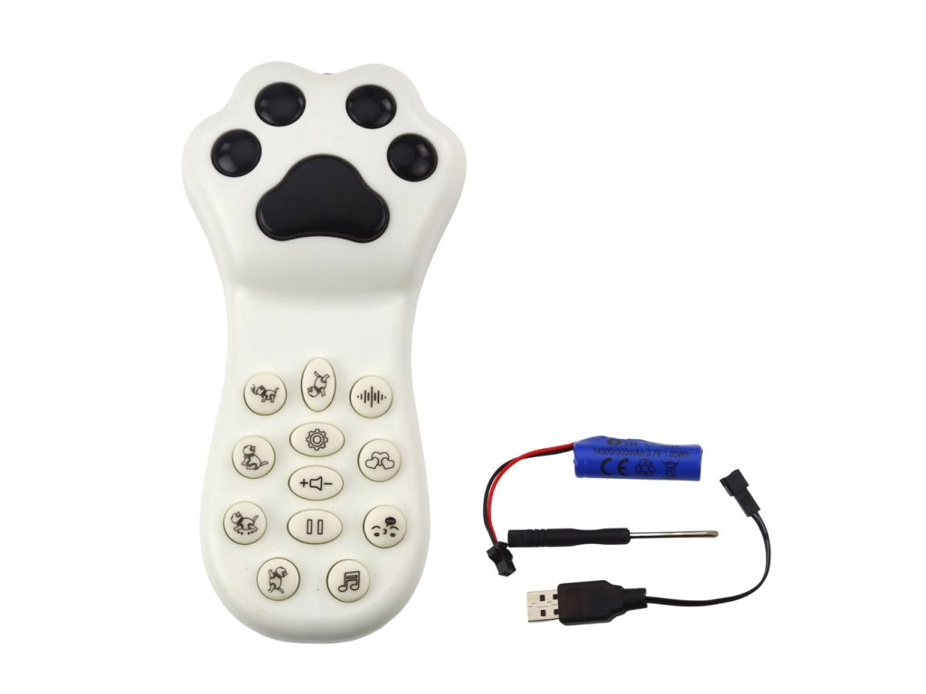 Hračka je napájena vestavěnou baterií, která se nabíjí pomocí USB kabelu. Po plném nabití si kotě může hrát až 60 minut, což dětem poskytuje dlouhou a nepřerušovanou zábavu. Ovládání zajišťuje přiložený dálkový ovladač ve tvaru tlapky, který se snadno používá a umožňuje plnou kontrolu nad pohyby kotěte.