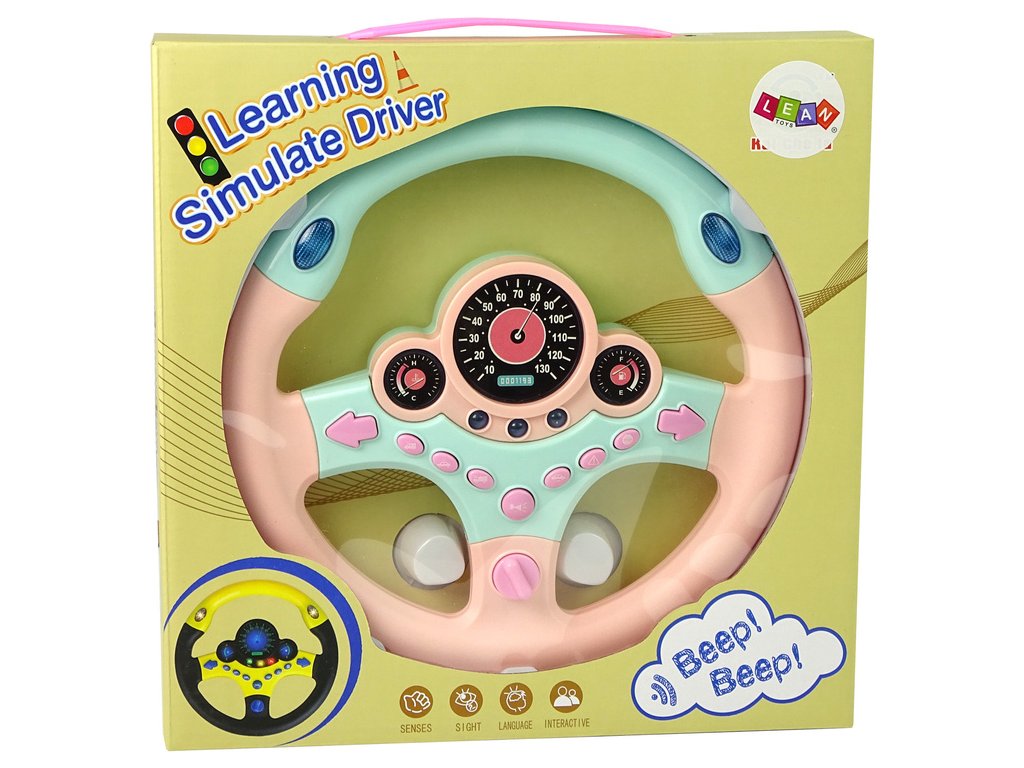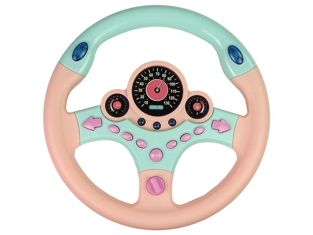 Volant je dodáván v růžové a tyrkysové barvě. Celý volant má 9 tlačítek včetně dvou ukazatelů, klaksonu a nouzových signálů. Stačí otočit startovacím klíčem a může začít hrát! Hodiny na volantu svítí zeleně. Díky vzhledu a LED diodám se vaše batole při řízení auta bude cítit jako na skutečné ulici. Volant skvěle padne do ruky vašeho batolete. Je čas, aby vaše dítě simulovalo řízení.