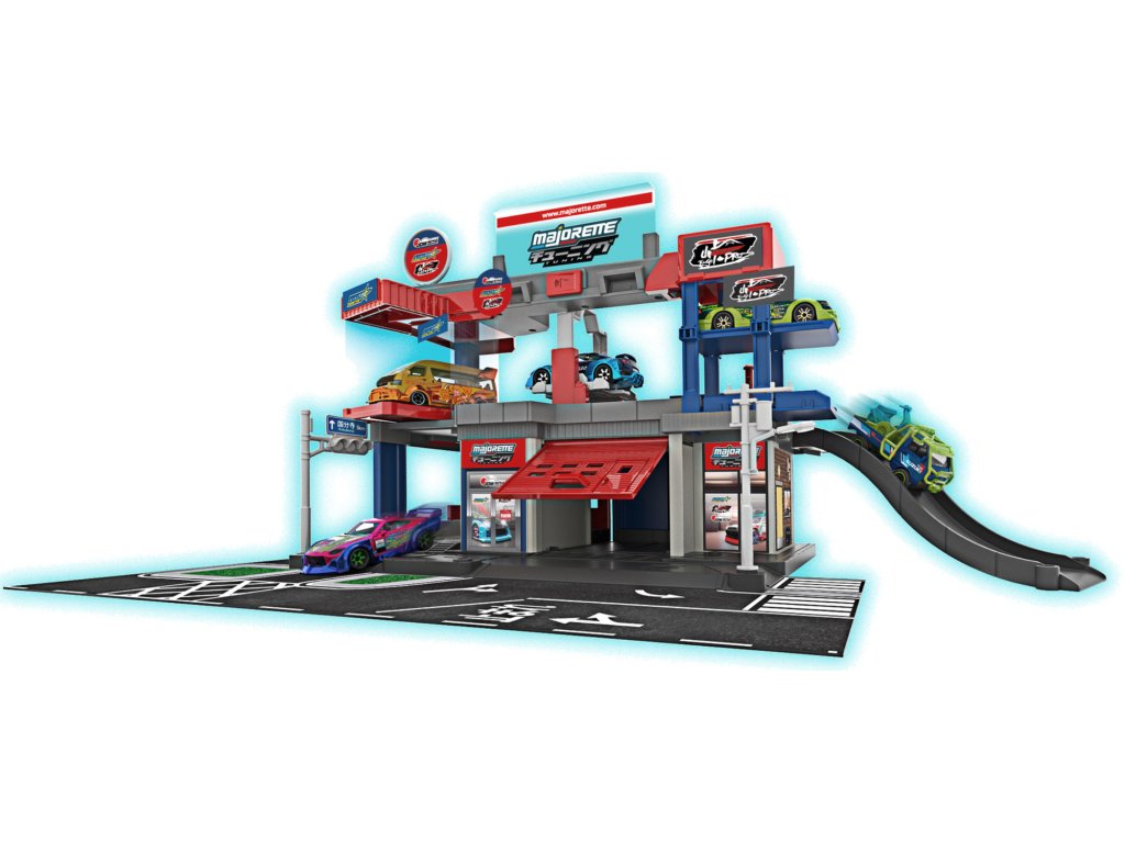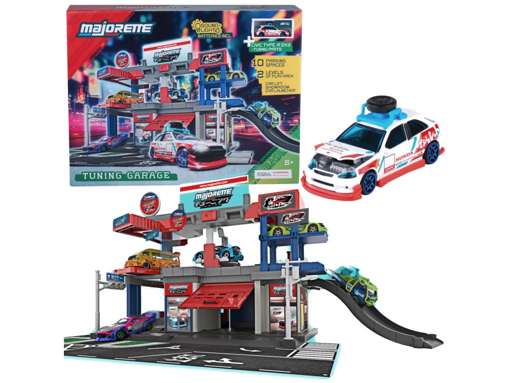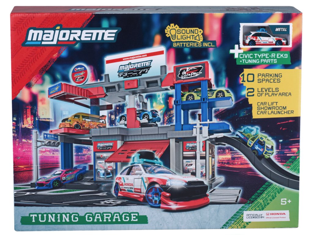 Tato hračka je skvělá sada skládající se z 2úrovňové tuningové garáže a Honda Civic závodního auta. V horním patře je tuning shop, kde si děti mohou vylepšit svá závodní auta. Celý je dále vybaven výtahem a 10 parkovacími místy . Mezi patry jsou rampy , které umožňují vozidlům vjíždět a vyjíždět z garáže rychleji. Na samém spodku hračky je připevněna napodobenina skutečné ulice a autodílna. Dále má garáž červené tlačítko , které po stisknutí rozsvítí světla a spustí zvuky charakteristické pro taková místa.