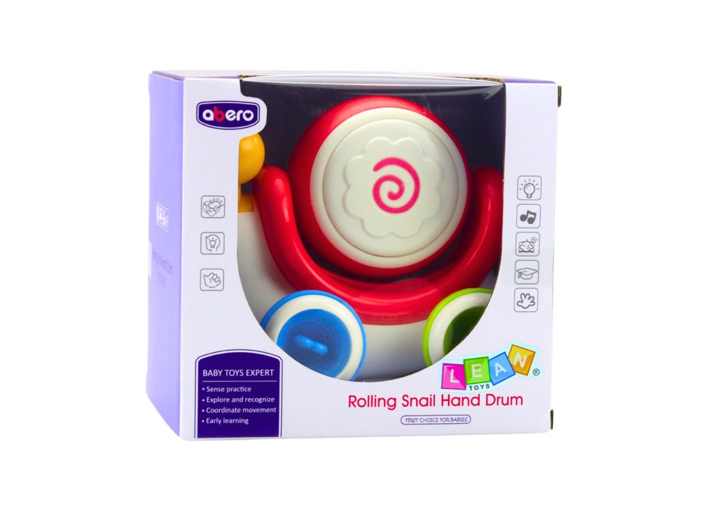 Interaktivní šnek na bubnu hudební vzdělávací, červený