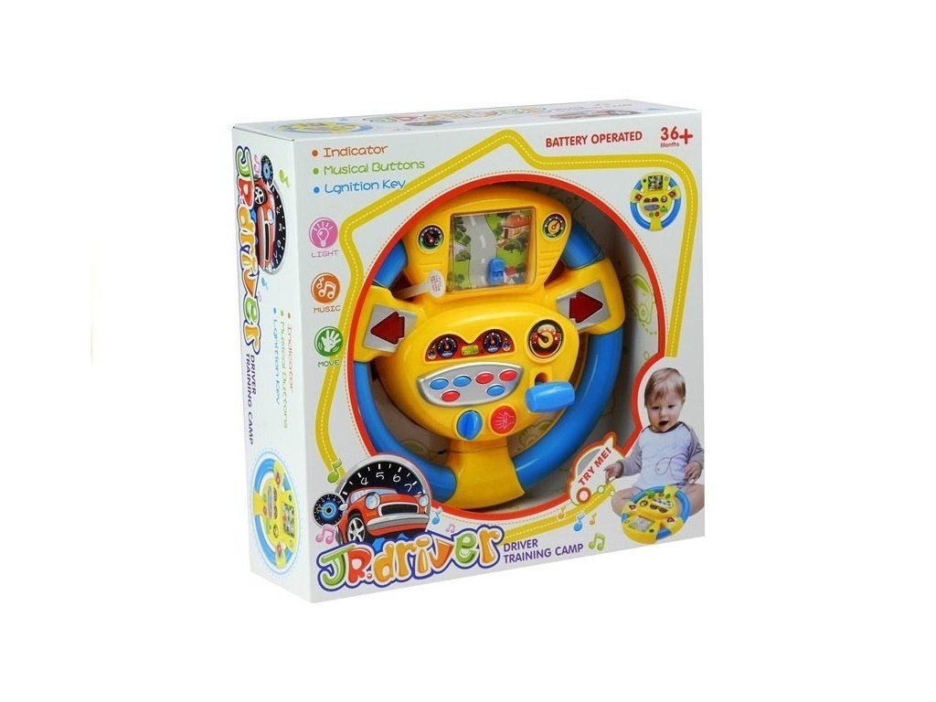 Barevná interaktivní hračka se zvuky a blikajícími světly je skvělým simulátorem volantu. Díky němu se každé dítě může cítit jako skutečný řidič auta, napodobující své rodiče, hraní si doma nebo v autě na dlouhé cestě.