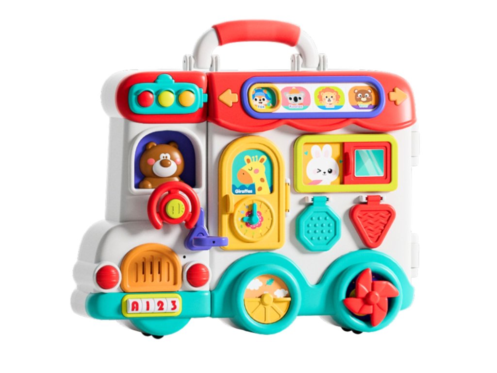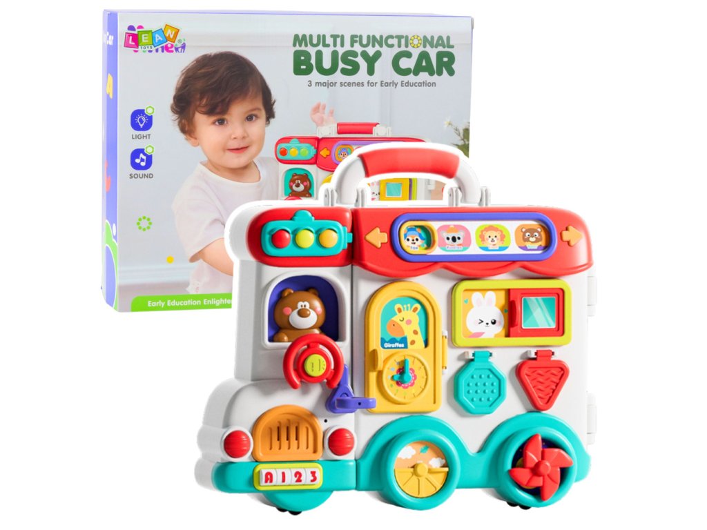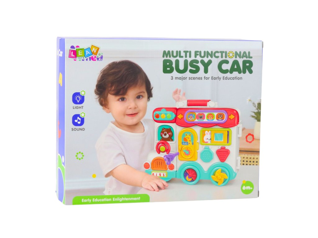 Interaktivní výukové auto Busy Car je multifunkční hračka, která kombinuje výukový panel, třídič, klavír a manuální prvky a podporuje rozvoj dítěte hrou. Díky barevným tlačítkům, posuvným prvkům, dveřím, rotujícím kolečkům a pohyblivým postavičkám mohou batolata objevovat svět zvuků, světel a tvarů v atraktivním a uživatelsky přívětivém formátu.