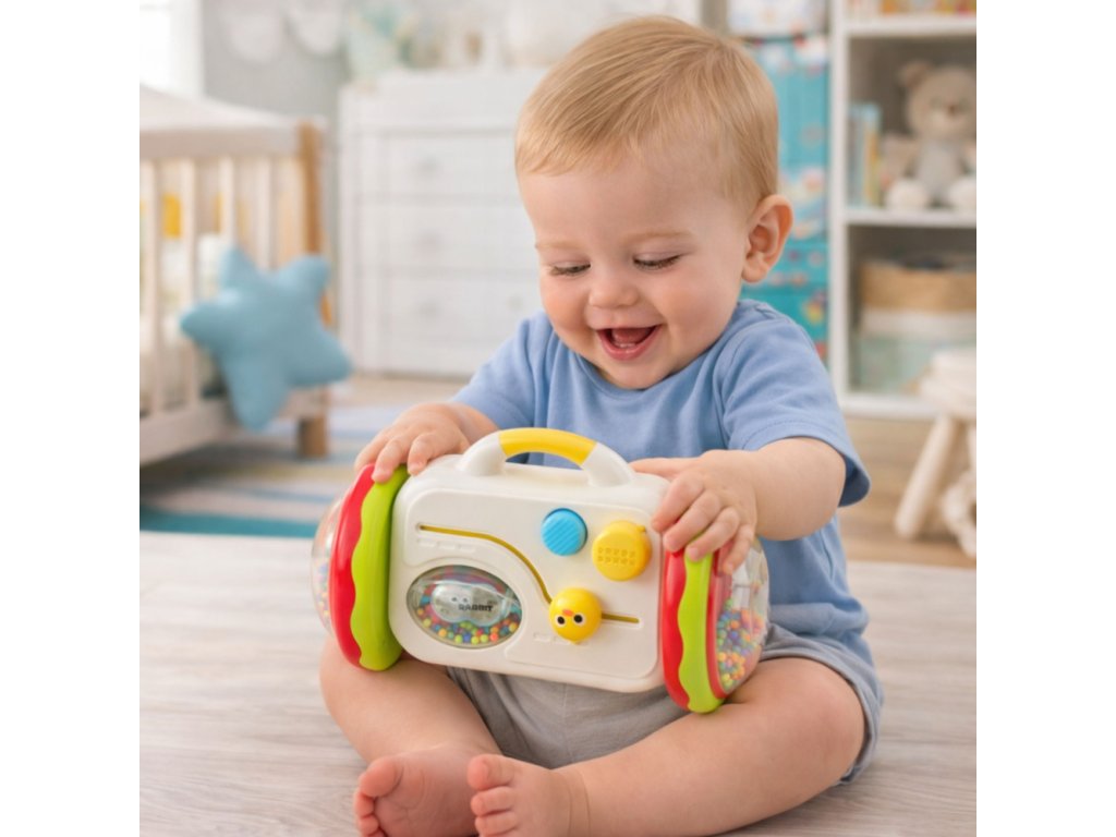 Die Rassel mit bunten Bällen stimuliert Hör- und Sehvermögen, während die leuchtenden Farben die Aufmerksamkeit des Babys wecken und zum Erkunden anregen. Der praktische Griff macht das Spielzeug leicht zu transportieren und somit ideal für drinnen und draußen. Da keine Batterien benötigt werden, ist es sicher und praktisch für den täglichen Gebrauch.