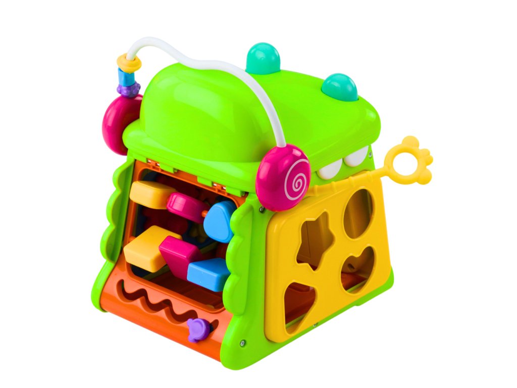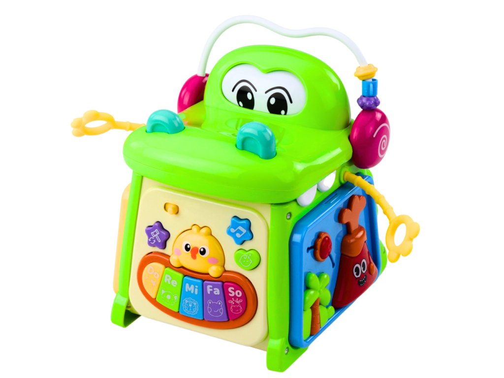 Hračka obsahuje mimo jiné klavír s barevnými klávesami "Do, Re, Mi, Fa, So", pohyblivé prvky pro manipulaci, hodiny s pohyblivými ručičkami a třídičky s bloky různých tvarů. Každá strana kostky nabízí jiné aktivity, díky čemuž hračka udrží zájem dítěte na dlouhou dobu.