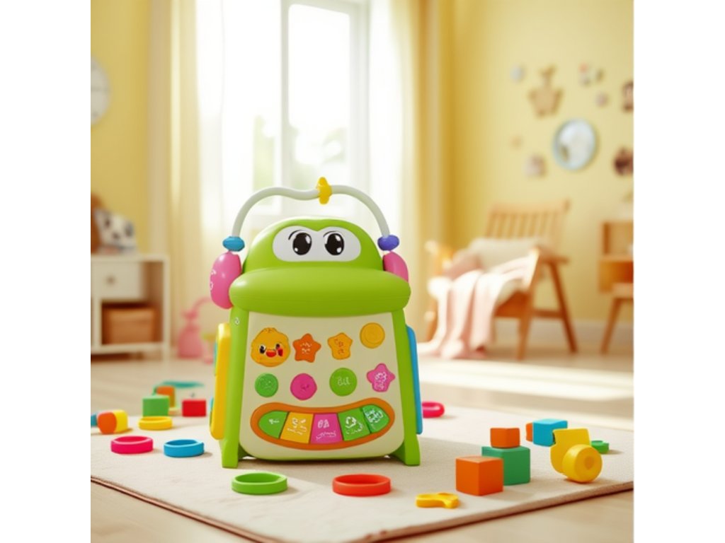 Multifunkční interaktivní vzdělávací kostka je rozsáhlá smyslová hračka, která poskytuje dítěti mnoho podnětů podporujících jeho rozvoj na různých úrovních. Kostka byla navržena tak, aby stimulovala smysly, motoriku a koordinaci oko-ruka pomocí různých textur, tvarů a zvuků.