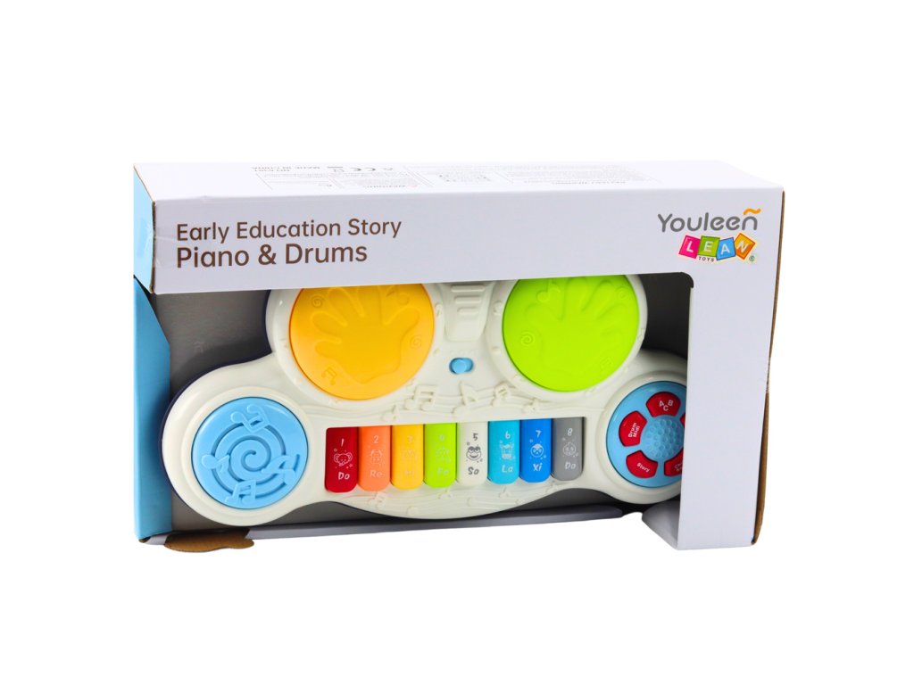 Interaktivní hudební hračka Piano Drums je vynikající nabídkou pro nejmenší, která spojuje zábavu s učením. Díky různým zvukům, podsvíceným klávesám a zabudovaným hudebním efektům může dítě rozvíjet své rytmické a sluchové schopnosti již od prvních měsíců života.