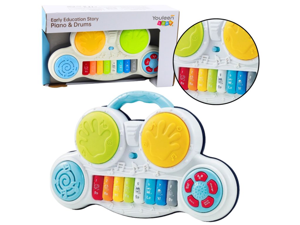 Interaktivní vzdělávací piáno s bubny, barevné, zvířecí zvuky