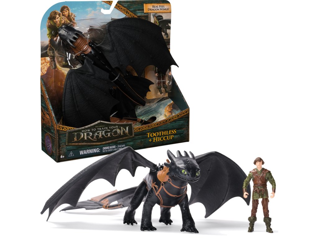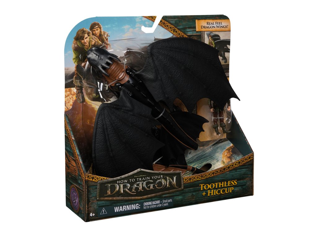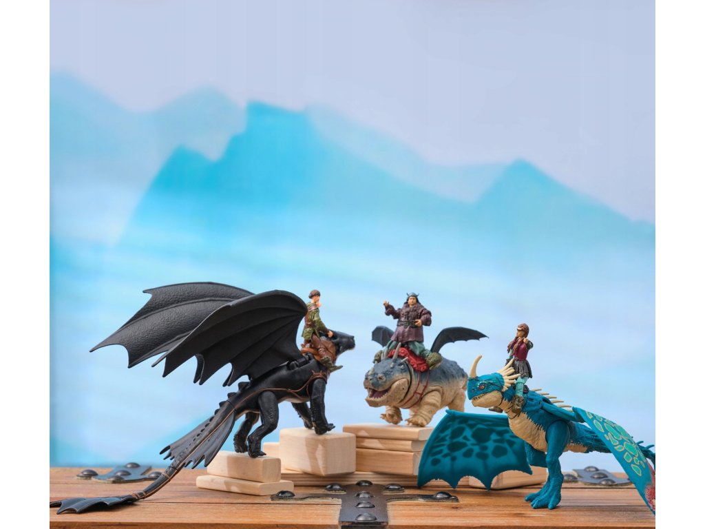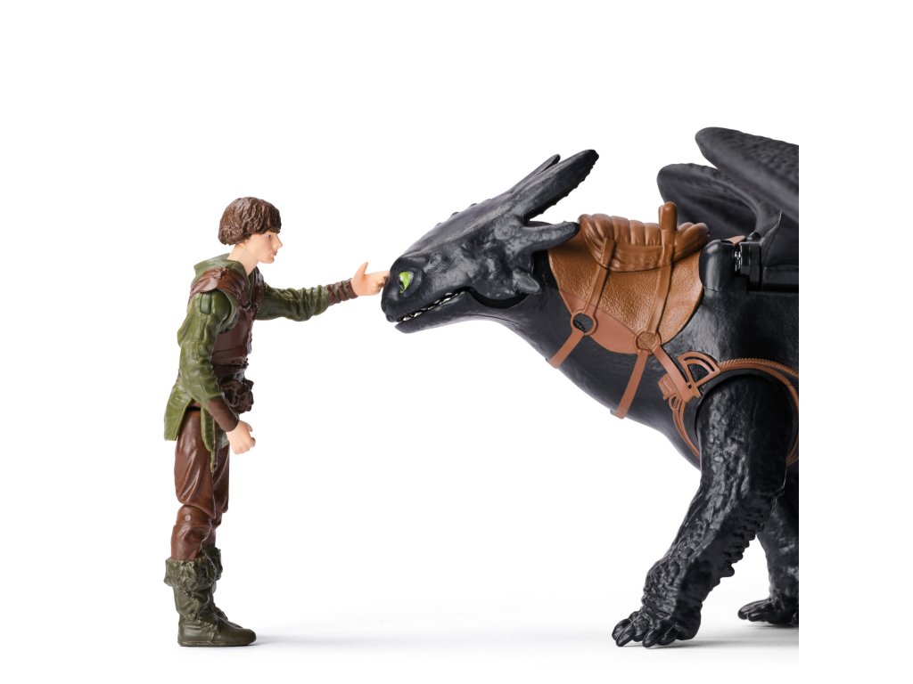 - Dragon & Set Viking Rider: Hiccup (7,6 cm) se připojuje k Toothless (33 cm) pomocí malých sedlových háčků pro zvýšení pocitu společného dobrodružství.