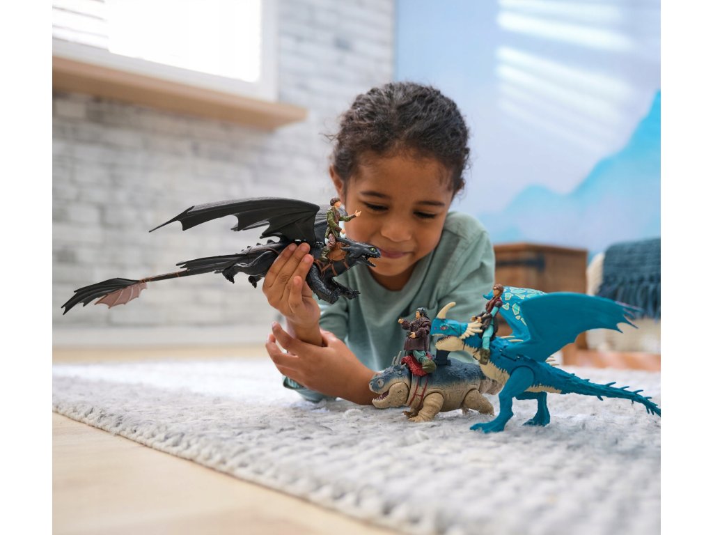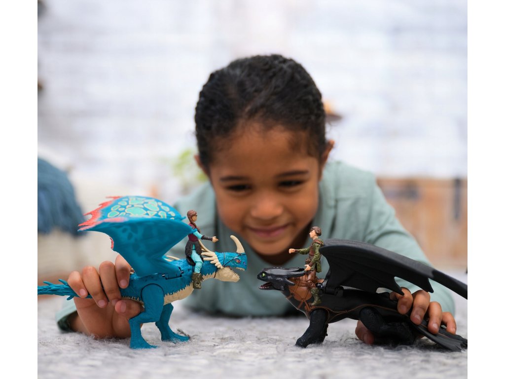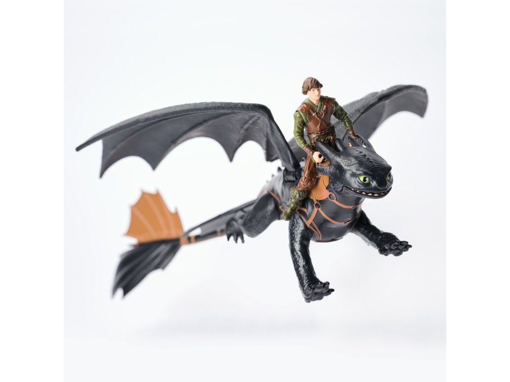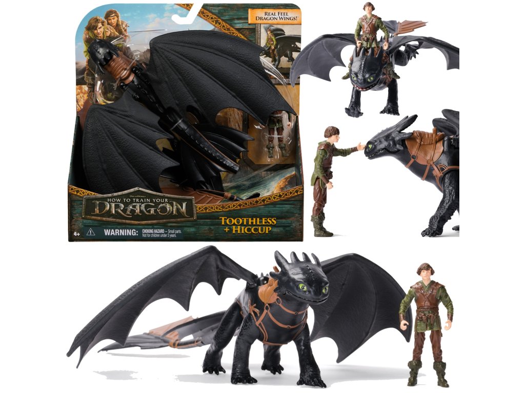 - Dragon & Set Viking Rider: Hiccup (7,6 cm) se připojuje k Toothless (33 cm) pomocí malých sedlových háčků pro zvýšení pocitu společného dobrodružství.