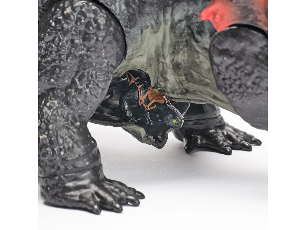Mini Toothless v měřítku 1:50 lze vložit do úst Red Death a poté jej schovat do dračí skřínky. -