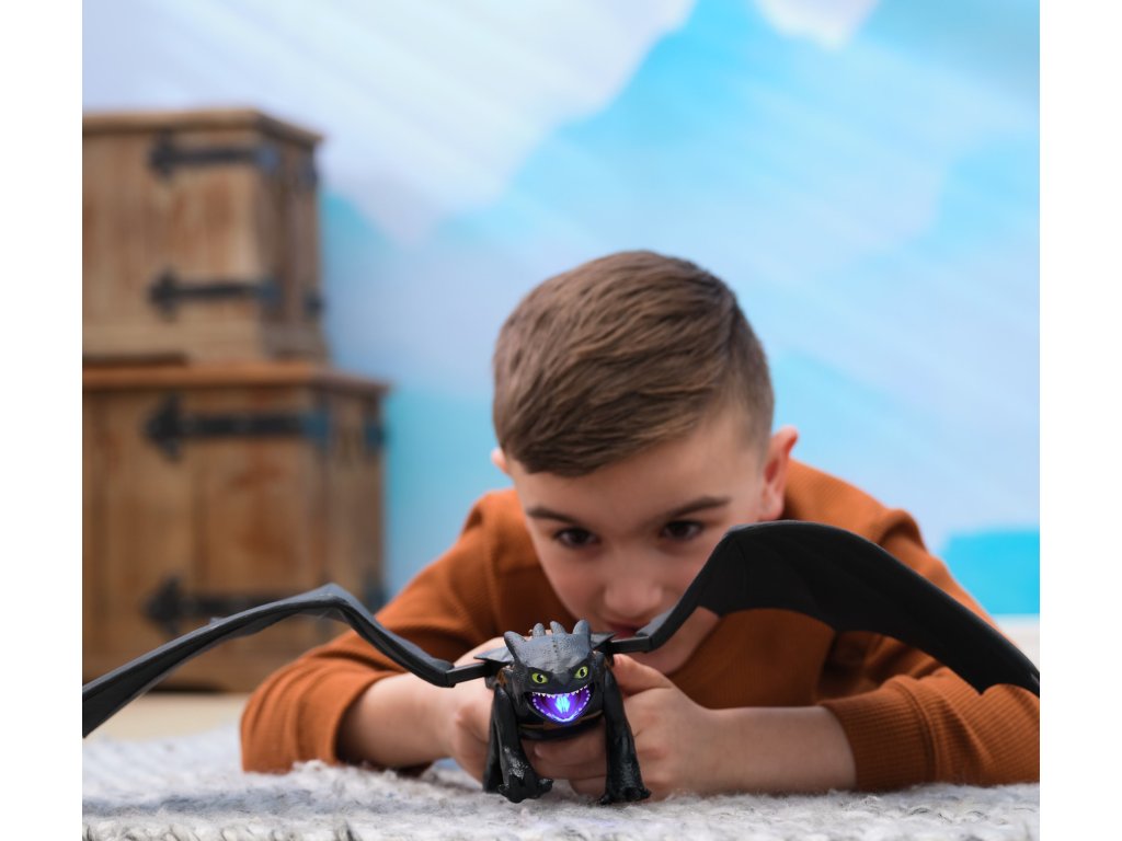 - Interaktivní hra – Pohyblivá křídla a kloubové končetiny umožňují polohování Toothless pro potápění nebo klouzání a poskytují různé herní scénáře.