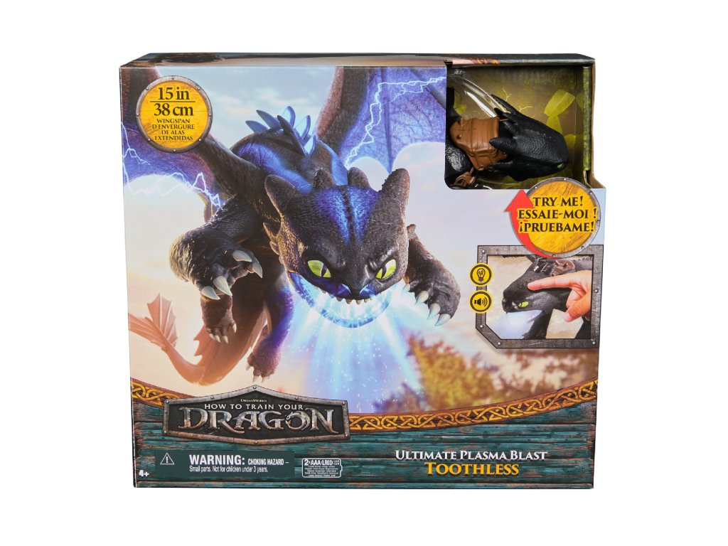 Ultimate Plasma Blast Toothless přenese fanoušky „Jak vycvičit draka“ do epických dobrodružství Vikingů a draků. Tato bezzubá figurka v plné velikosti s působivým rozpětím křídel 38 centimetrů zachycuje filmové detaily – od textury jeho šupin až po jeho výrazné páteře. Navíc okamžitě reaguje na každé stisknutí tlačítka u, nabíjí se a uvolňuje svůj modrý „plazmový“ výbuch s doprovodnými světelnými a zvukovými efekty.
