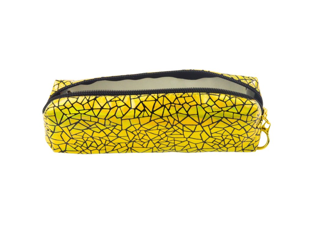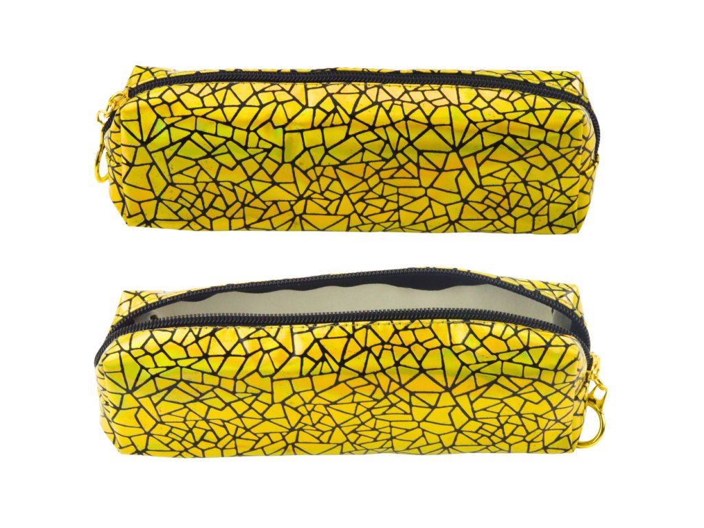 Jednokomorové školní pouzdro Holografický vzor Zlaté 20x6,5 cm