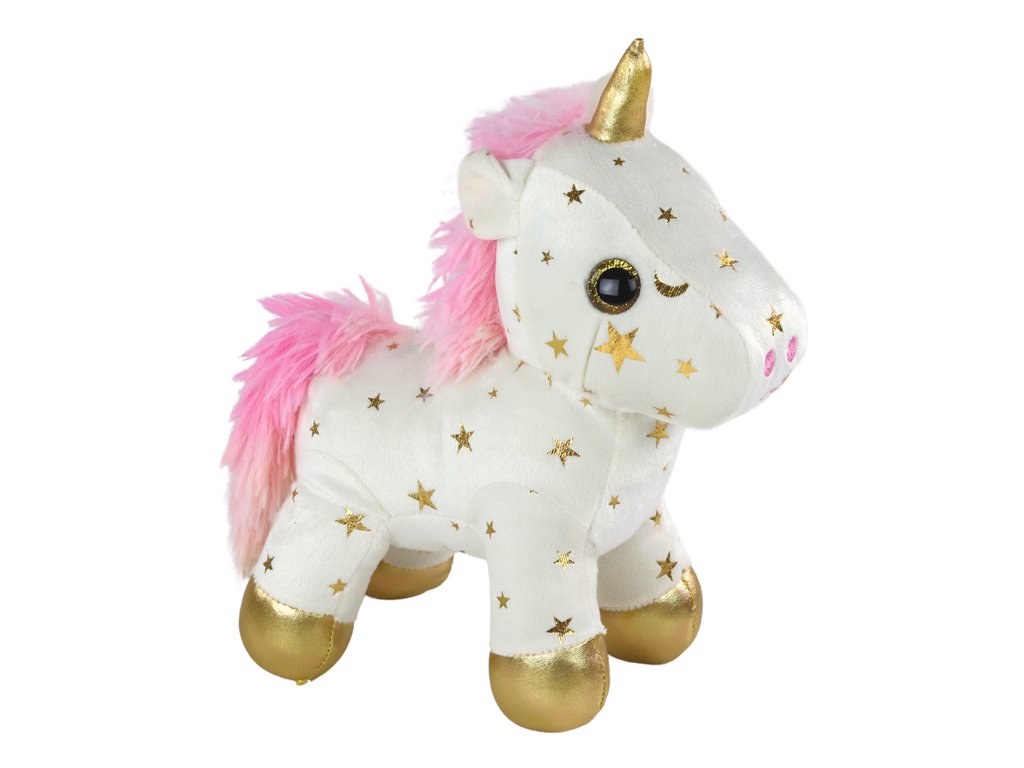 Okouzlující jednorožec je nenahraditelná hračka, která pomůže vašemu dítěti uvolnit se a usnout v kouzelné atmosféře. Tento bílý jednorožec s růžovou hřívou a zlatými hvězdami je nejen okouzlující dekorací pokoje, ale také praktickou pomůckou, která vám pomůže usnout.