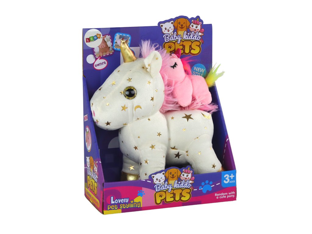 Součástí sady je i menší, spící jednorožec, který je perfektním společníkem na spaní pro batole. Tato rozkošná plyšová hračka je měkká a mazlivá, ideální k přitulení před spaním.