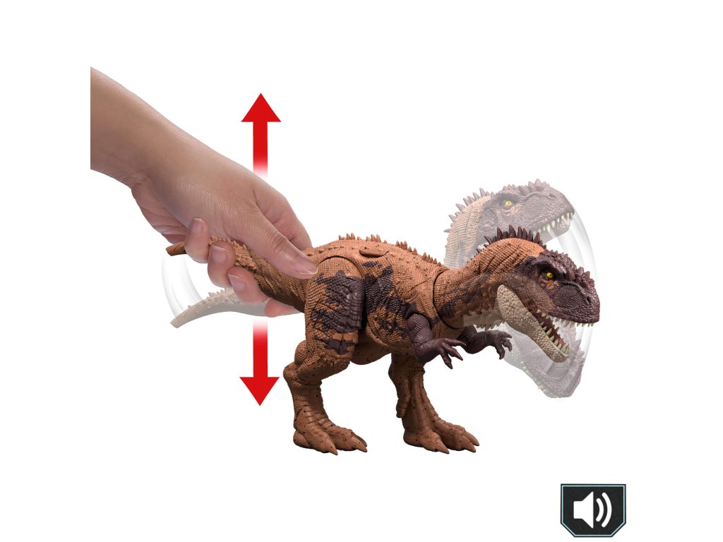 - Útok a řev „Divoký řev“: Pohyb ocasem nahoru a dolů spouští silný útok hlavou doprovázený realistickým zvukem řevu.