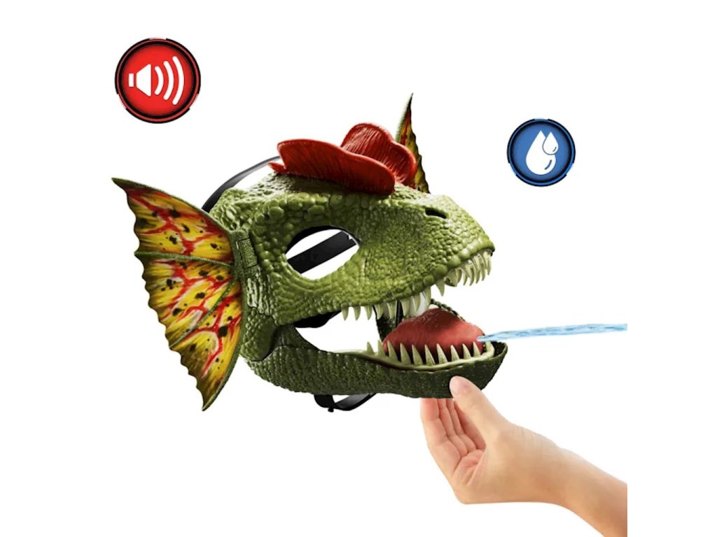 Herní maska Dilophosaura z Jurského světa se zvukem a funkcí střílení vody HXF55Staňte se Dilophosaurem! Tato maska Dilophosaura s funkcí stříkání vody, řvoucími zvuky a prodloužitelným krkem umožní dětem stát se jedním z jejich oblíbených dinosaurů!