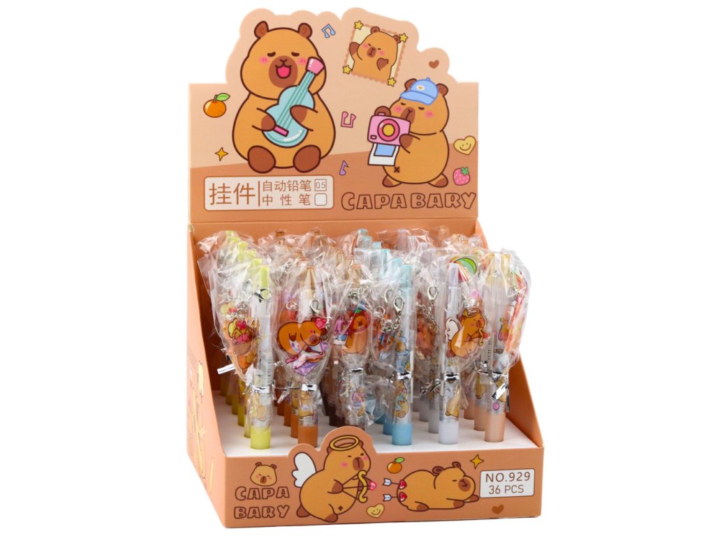 Okouzlující gelové pero s motivem kapybary a připojeným kroužkem na klíče je dokonalou kombinací funkčnosti a originálního designu. Vyrobeno z lehkého plastu, vyniká barevným potiskem a přívěskem na klíče s kapybarou připevněným na řetízku, který lze sundat nebo použít jako ozdobu penálu, pouzdra nebo batohu.