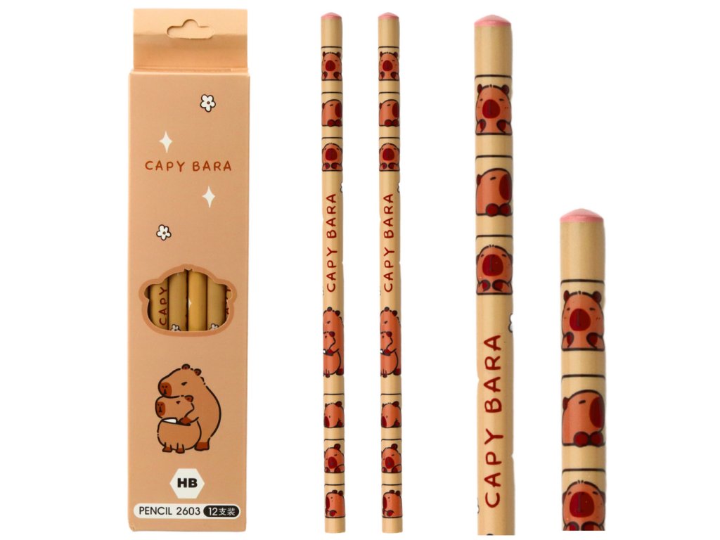 Sada tužek kapybara je okouzlující a praktická sada, ideální pro každodenní psaní, skicování a kreslení. Každá tužka je zdobena vtipnou grafikou kapybary, která jí dodává jedinečný charakter a skvěle se hodí jak do školy, tak domů nebo do kanceláře.