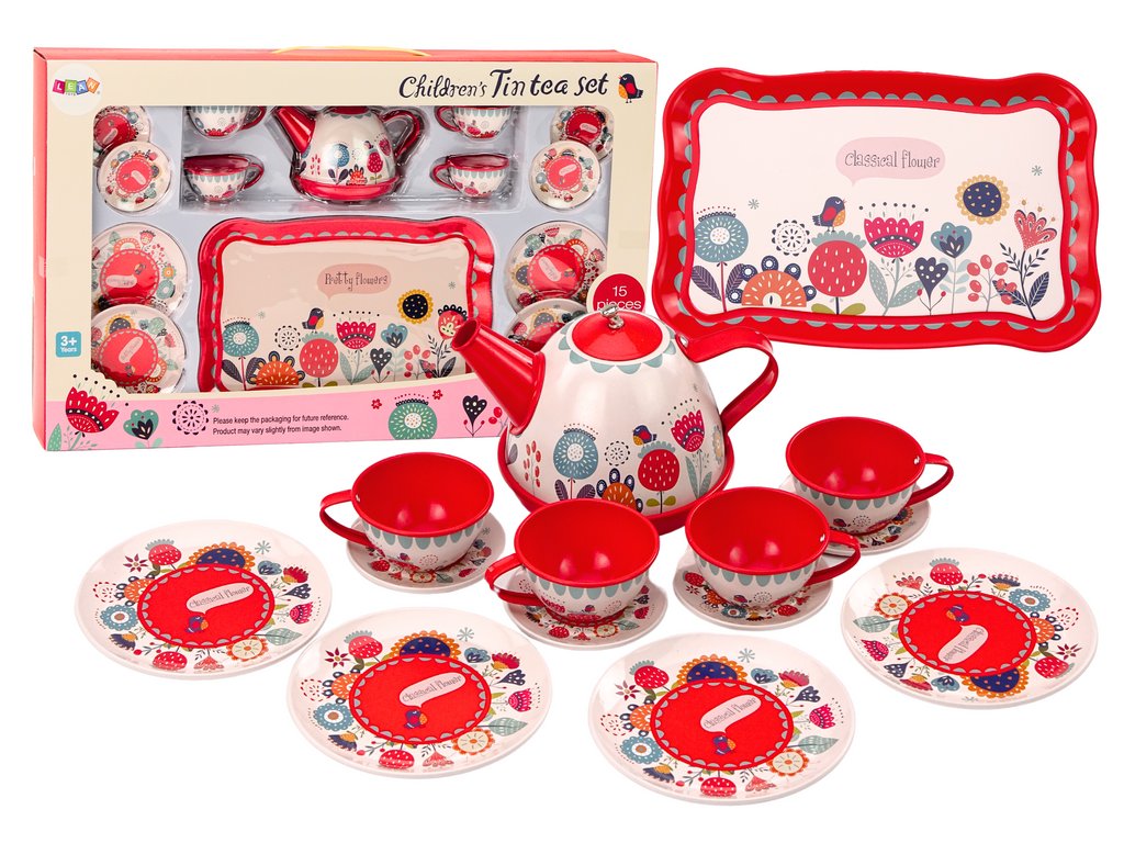 Sada je vyrobena z odolných a bezpečných materiálů, což zajišťuje dlouhodobé používání a bezpečnost při hře. Díky červené barvě a květinovým motivům je vizuálně atraktivní, což jistě zaujme každé dítě.