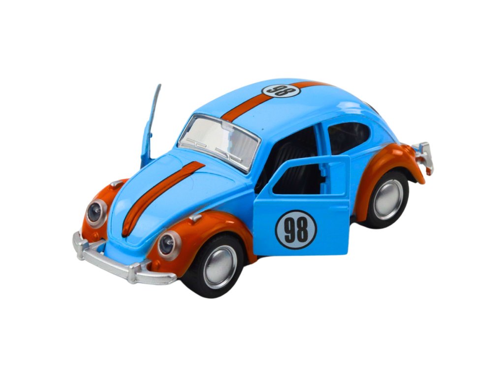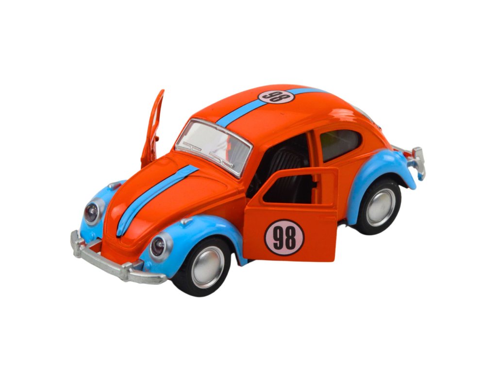 Klasické auto Beetle – kovové, zpětný pohon, otevírací dveře, mix