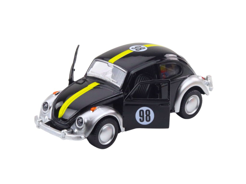 Toto klasické auto Brouka je jedinečnou volbou pro mladé automobilové nadšence a milovníky retro modelů. Je vyrobeno z kovu s plastovými prvky a vypadá neuvěřitelně působivě – charakteristická silueta Brouka, ozdobné pruhy a závodní číslo dělají z hračky miniaturu skutečného závodního vozu.