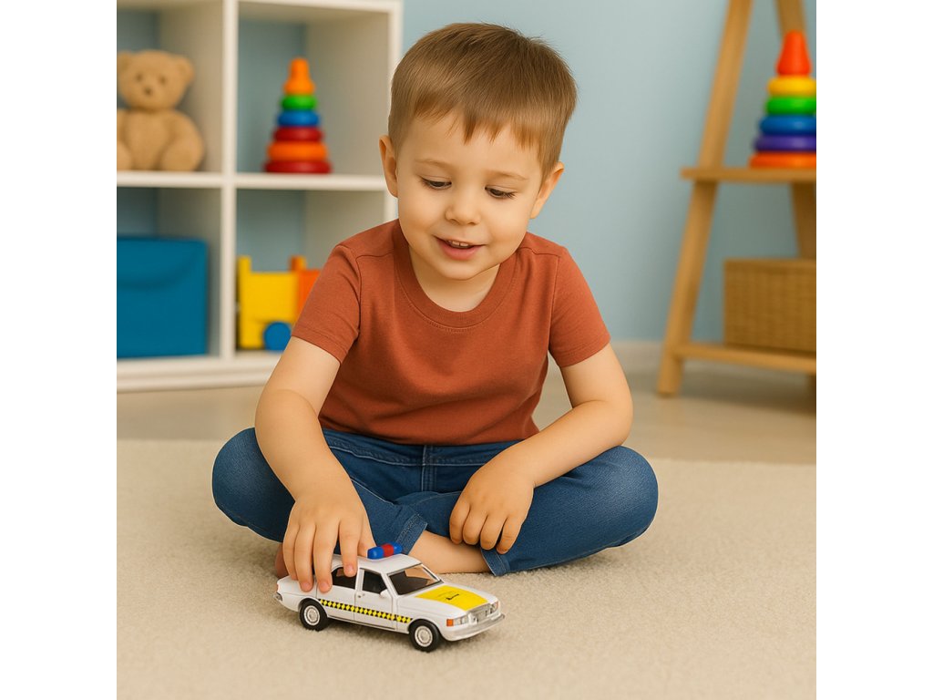 Toto kovové policejní auto v měřítku 1:32 je jedinečnou volbou pro děti, které milují policejní vozidla a realistické herní scénáře. Model, inspirovaný klasickým policejním autem, je vyroben s pečlivou pozorností k detailu a je podmanivý jak vzhledem, tak funkčností. Charakteristické policejní barevné schéma a označení mu dodávají autentický vzhled, který přitahuje pozornost a umožňuje dětem plně se ponořit do role policisty během hry.