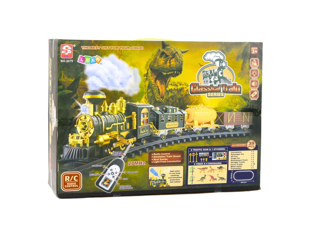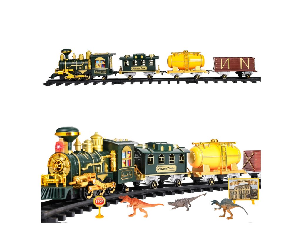 Elektrický vláček Klasický vláček je působivá sada, která kombinuje klasický design starých parních lokomotiv s dynamickými prehistorickými tématy. Tato neuvěřitelně působivá hračka je určena pro děti, které milují realistické a poutavé scény a kombinaci více témat v jednom herním zážitku. Lokomotiva byla navržena s pečlivou pozorností k detailu, vyznačuje se elegantními zlatými povrchovými úpravami a klasickým tvarem inspirovaným parními lokomotivami minulých dob. Přidání vody do modelu vytváří jemný kouřový efekt, který umocňuje atmosféru skutečné jízdy parním vlakem.