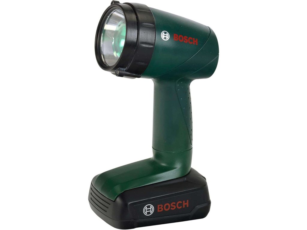 Tato dětská svítilna je v tmavě zelené barvě s černými prvky. Její hlavici zdobí pěkně kontrastní zelené, červené logo Bosch. Tuto svítilnu lze umístit na jakýkoli rovný povrch jako je stůl nebo police.