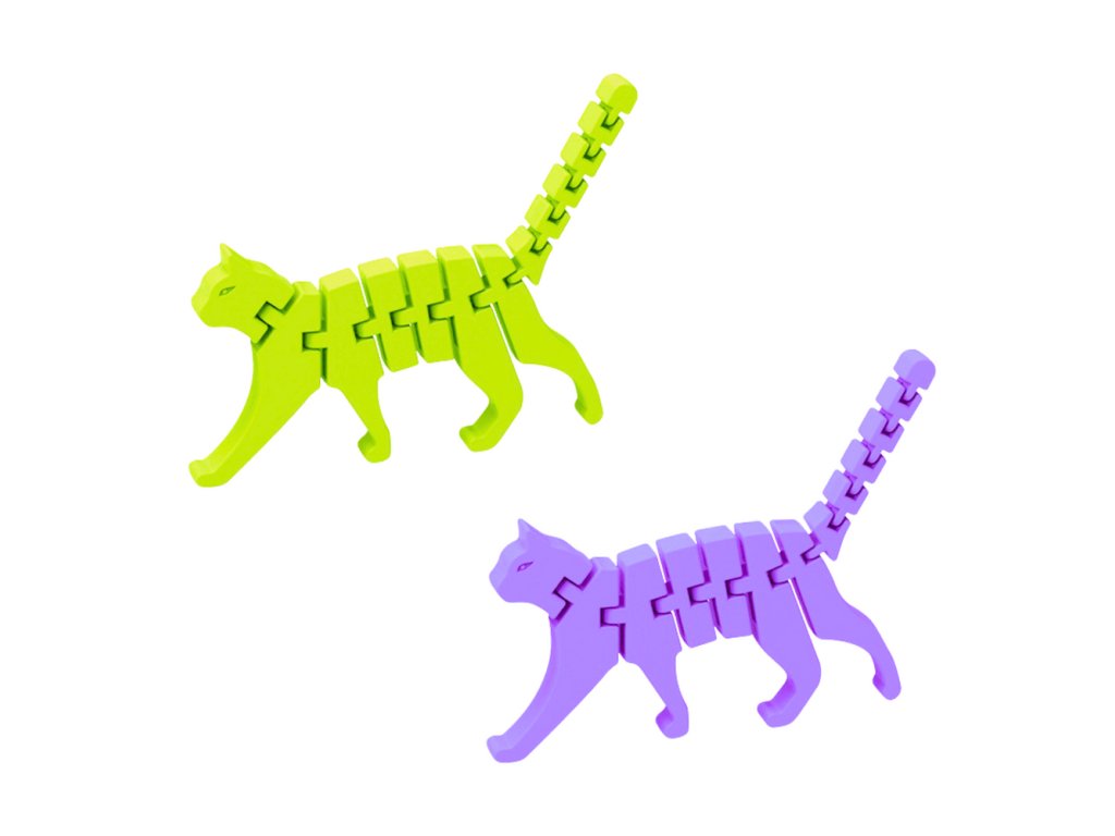Hračka je vyrobena z odolného plastu v intenzivních pastelových barvách. 3D kočka skvěle funguje jako pomůcka pro procvičování jemné motoriky, zlepšení koncentrace a kreativní hry. Dá se použít i jako dekorace na stůl nebo malý dárek.