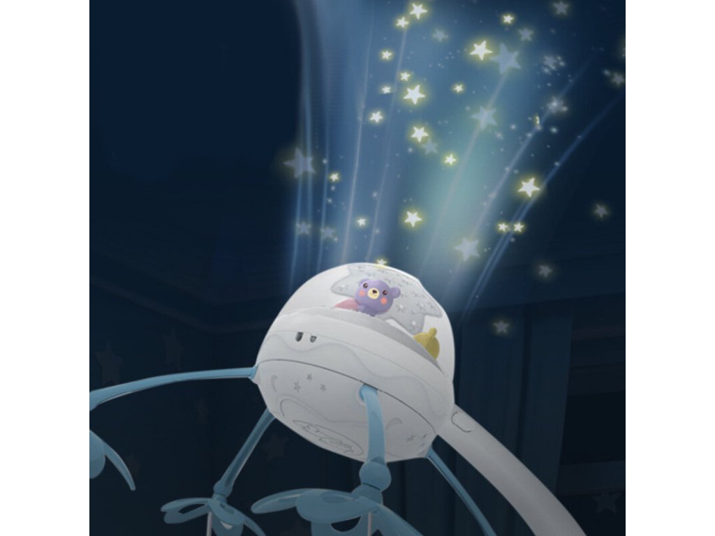 Báječně barevný kolotoč do postýlky je skvělý kamarád pro vaše miminko, který mu pomůže usnout. Příjemné melodie a noční světýlko uklidní vaše miminko a vy budete moci své dítě hlídat i při vypnutém osvětlení díky funkci projektoru.