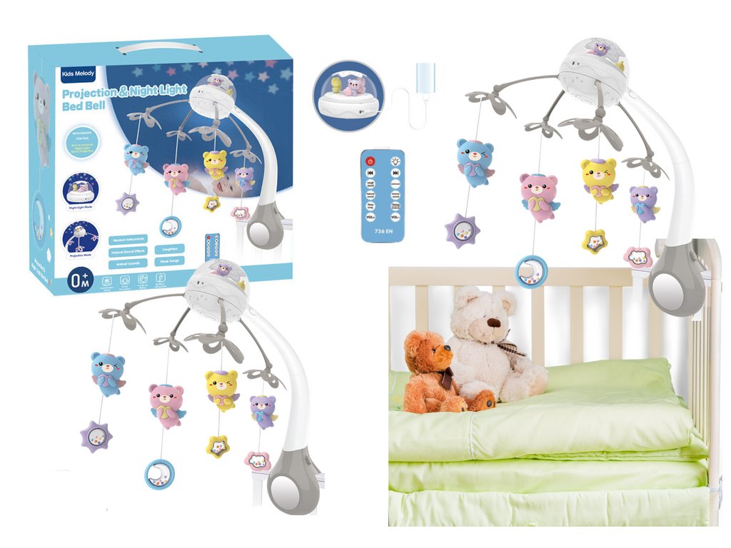Kolotoč nad postýlku – dálkové ovládání, projektor, melodie, zvuky zvířat, šedý