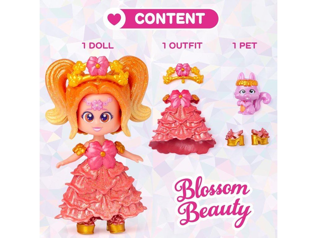 Objevte světBlossom Beauty– sladké princezny s květinovým stylemFlorar Chic , která ráda tančí balet a vždy ji doprovází její rozkošná nejlepší kamarádka veverka.ŽivotBlossom Beauty je o cestování mezi paláci a kouzelnými lesy a její lesklé, třpytivé účesy a pohádkové outfity jsou připraveny na ples nebo procházku lesem!