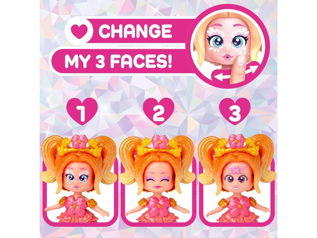 - 3 výrazy obličeje: jedním kliknutím změňte výraz své princezny – od šťastného úsměvu, přes zasněný pohled až po zvědavé překvapení.