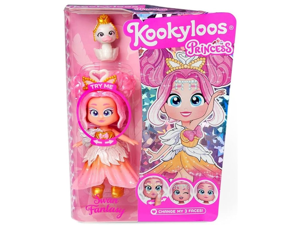 KookyLoos Princess Swan Fantasy je perfektní dárek pro fanoušky a sběratele malých princezen, kteří milují třpytivé oblečení, zaměnitelné výrazy obličeje a kreativní hru ve stylu pohádky!