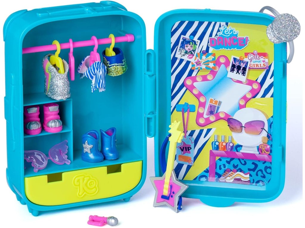 - otevírací kufr: pojme veškeré potřebné oblečení a doplňky postavy na ramínkách nebo ve výsuvné skříni