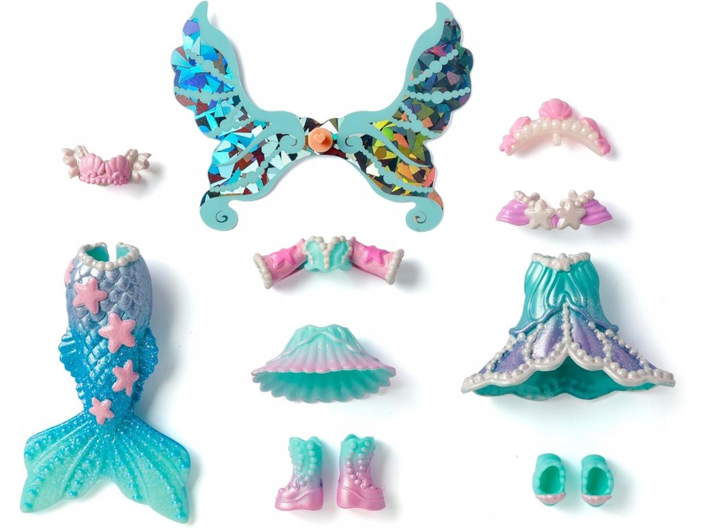 Objevte svět Pohádky! Cestujte z paláce do lesa a dokonce až na dno oceánu! Díky převlekům, které jsou součástí sady, můžeme připravit Perlu na měnící se podmínky. V krásných šatech na plese potěší každého. Proměnou v mořskou pannu bude Pearlnejrychlejší ve vodě. Zatímco barevná pohádková křídla a květinová sukně dodají naší pohádce kouzlo.