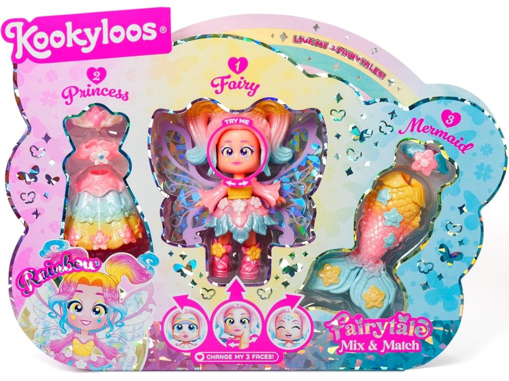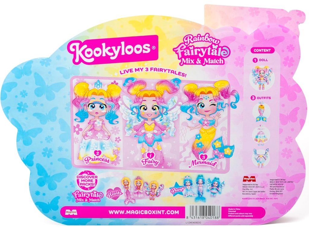 KookyLoos Fairytale Rainbow je perfektním dárkem pro fanoušky malých princezen a sběratele, kteří milují třpytivé oblečení, zaměnitelné výrazy obličeje a kreativní dárkové dobrodružství ve stylu pohádek a dokonalou dárkovou sadu pro děti, které milují pohádkové figurky!
