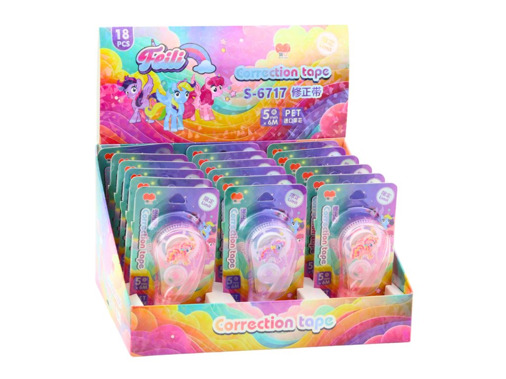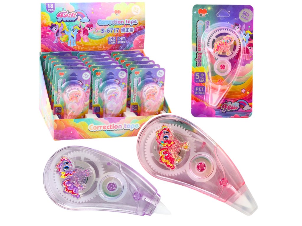 CORRECTOR TAPE MYŠ ŠKOLNÍ KANCELÁŘ 6M X 5MM JEDNOROŽEC RŮŽOVÁ FIALOVÁ