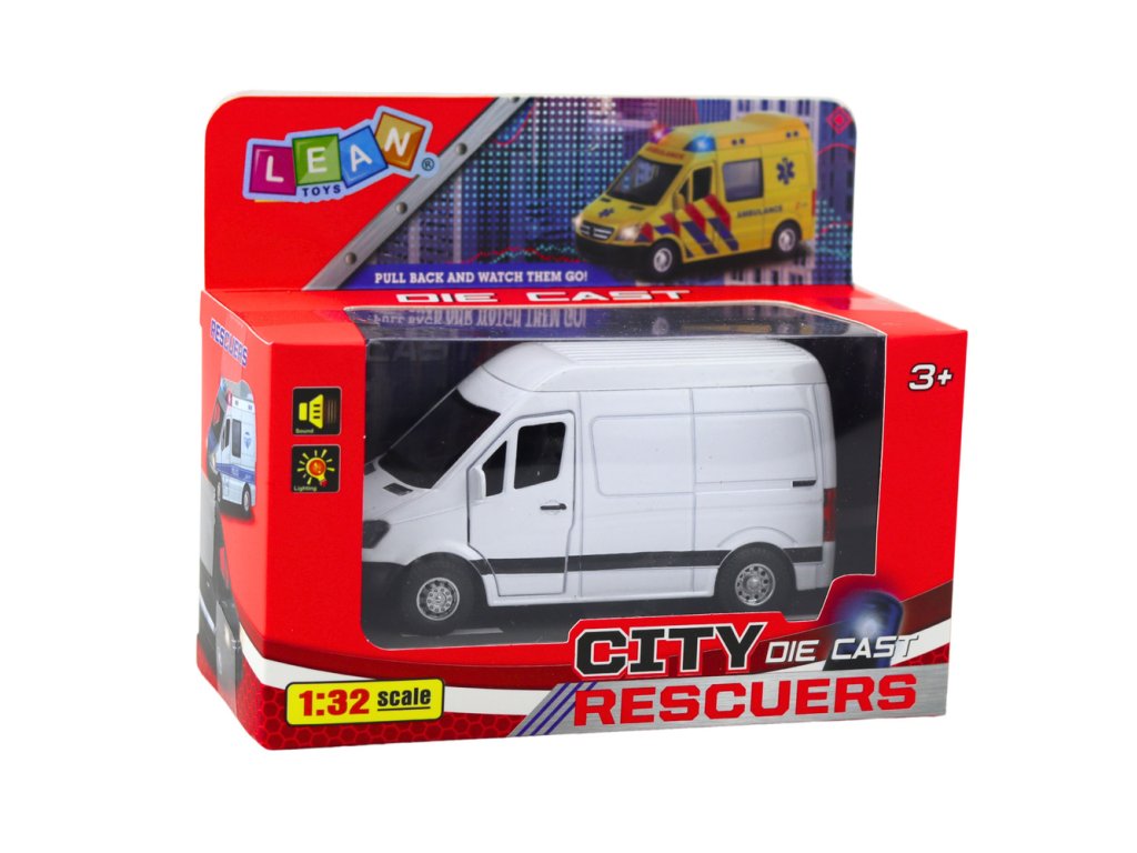 Kovový dodávkový vůz Natahovací motor Světla Zvuky Bílý 1:32