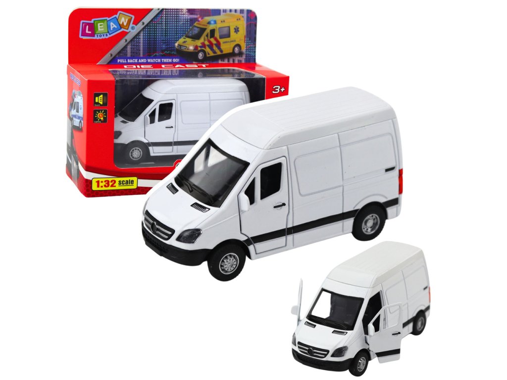 - Bílá kovová dodávka 1:32 se stahovacím pohonem