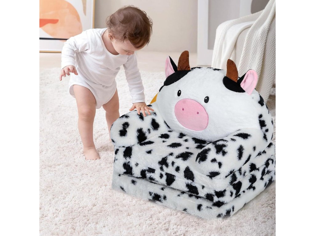 Okouzlující design s charakteristickými černobílými nášivkami, s přívětivým obličejem, růžovým nosem, odstávajícíma ušima a měkkými rohy, nábytek okamžitě upoutá pozornost dítěte a navodí do interiéru veselou, útulnou atmosféru. Díky zvířecímu motivu dokonale ladí s dekorem dětského pokoje a stává se jeho funkční ozdobou.
