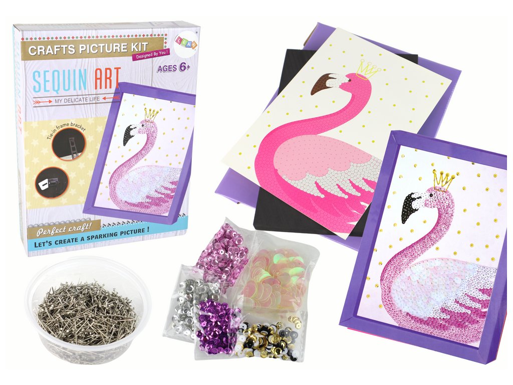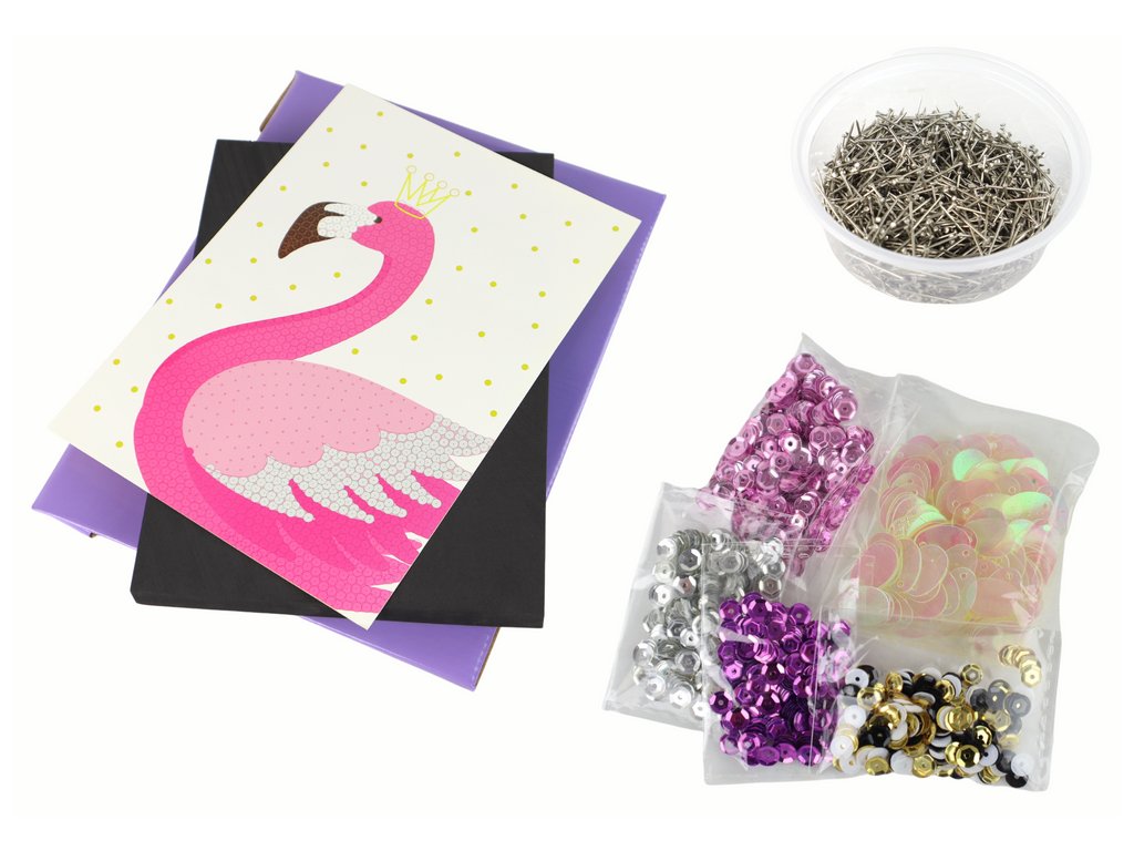 Kreativní DIY flitry Set cvočky Flamingo Frame