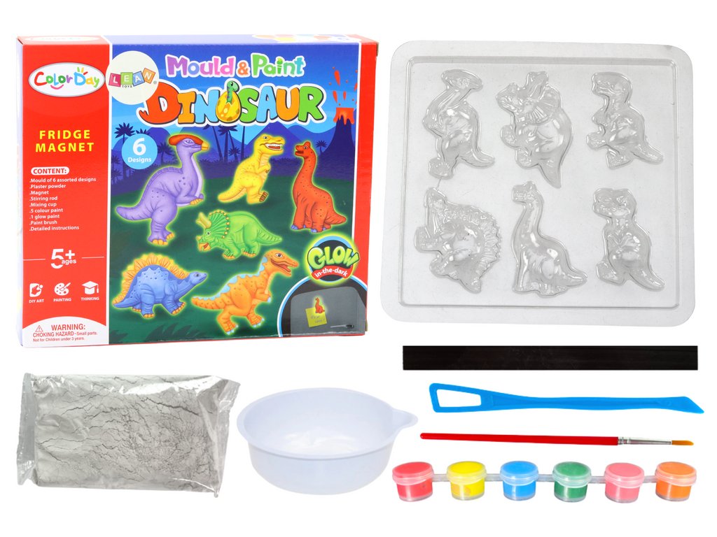 Kreativní sada na tvorbu dinosauřích magnetů je jedinečnou příležitostí pro děti, jak vyjádřit svou kreativitu a vytvořit jedinečná umělecká díla. Sada obsahuje vše potřebné k výrobě až 6 různých dinosauřích vzorů ze sádry, díky čemuž je každý magnet jedinečný a okouzlující.