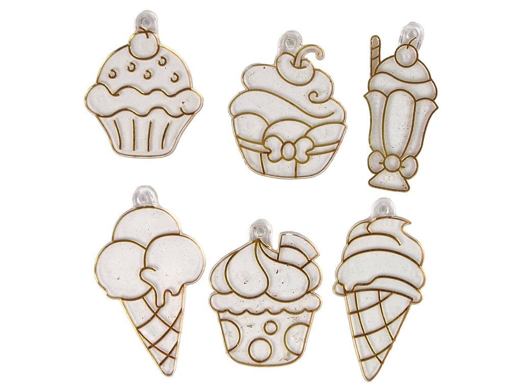 - 6 vitrážových tvarů zmrzliny a sladkostí
