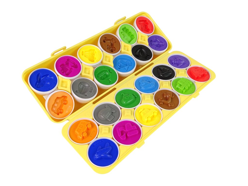 Shodné tvary Kreativní skládačka ve tvaru vejce si jistě ukradne srdce každého malého fanouška vozidel. Sada obsahuje až 12 vajec skrývajících pod skořápkou různé tvary a barvy vozidel. Zábava je v sladění obou polovin tak, aby tvořily celek. Na rozdíl od zdání to není snadný úkol; aby se vajíčka spojila, musí ladit s tvarem vozidla a jeho barvou.