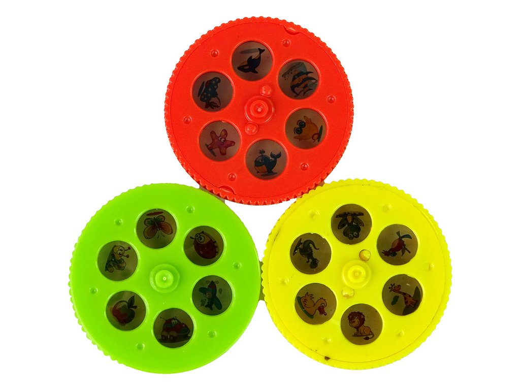 Projektor je vyroben v zelené barvě a je skládací, takže se snadno vejde do batohu. Pohyblivá hlava upravuje úhel a zaostření promítaného obrazu. Pro spuštění projektoru jednoduše vložte disk s obrázky, zapněte tlačítko na zadní straně a je hotovo!