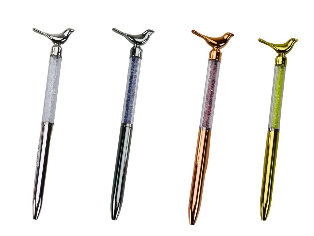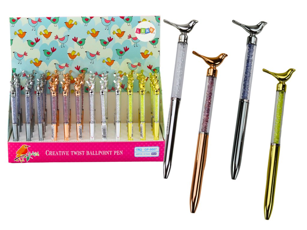 Toto elegantní kuličkové pero s ptákem je skvělou volbou pro ty, kteří oceňují jemnou eleganci a jedinečný design. Pero je zakončeno stylovou figurkou ptáčka, která mu dodává sofistikovaný půvab, a vyniká tak mezi standardními psacími nástroji.